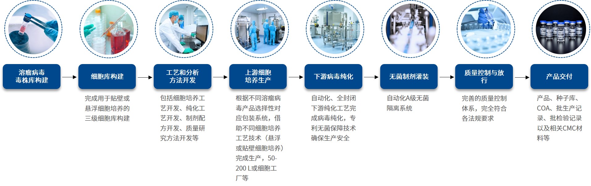 拥有多种溶瘤腺病毒,包括溶瘤疱疹病毒、溶瘤痘苗病毒、溶瘤新城疫病毒的技术工艺和GMP生产经验