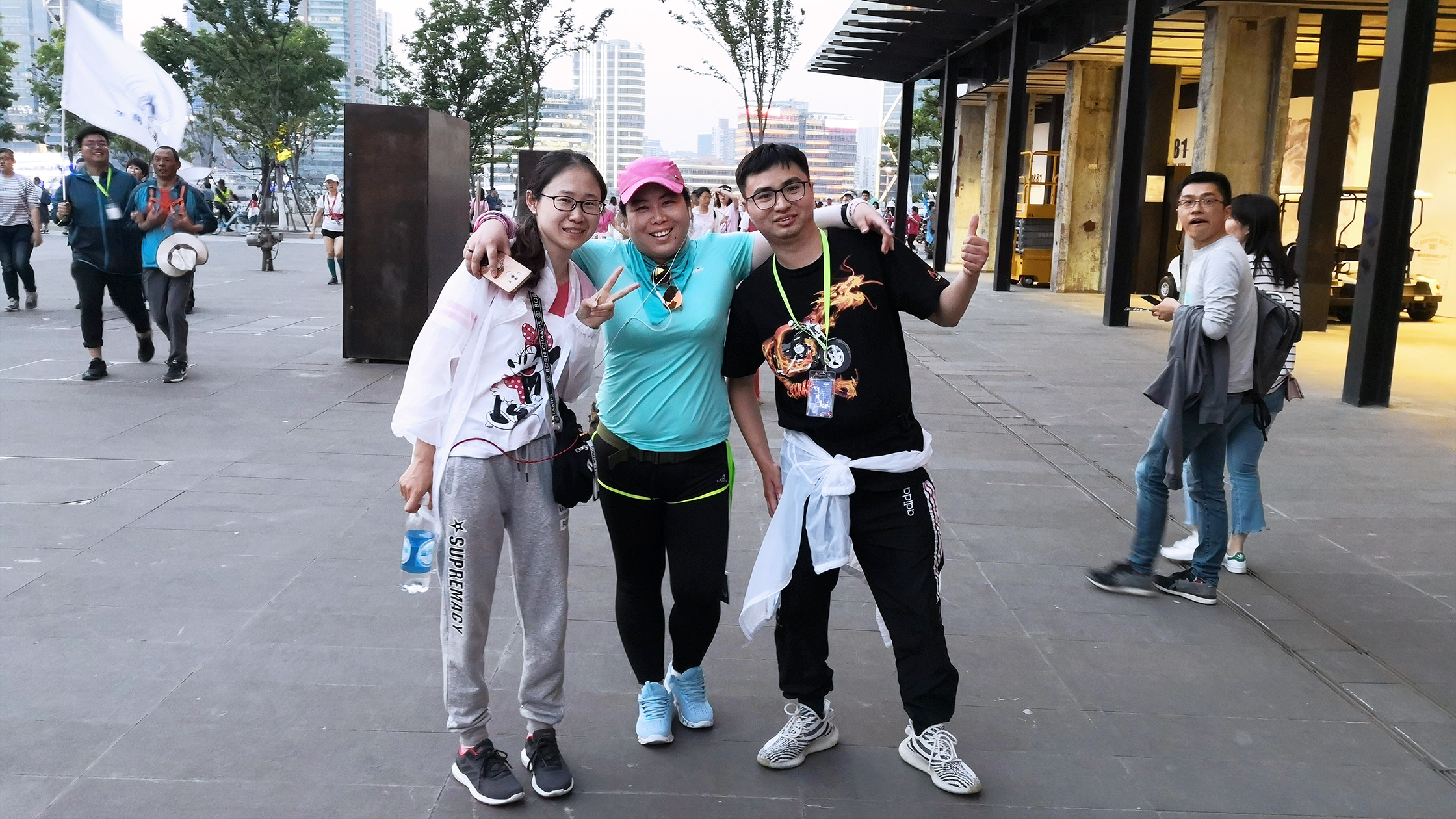 “军功章”的另一半还有我们背后的志愿者们,从在暴走前夕开始,就开始为队员们准备了充足的装备:腰包、医疗防护用品以及各卡点需要准备的食品清单等;在暴走当天沿途的各卡点,到处都有志愿者们的身影,为我们的暴走队员准备了各种补给,有水果,有点心还有充电器和冰袋……更多的是对每位队员的关爱与鼓励。行政部的燕子姐亲手煮的绿豆汤还有为了让队员们省力帮忙剥茶叶蛋,采购部的美女肖老师一个人身背20瓶盐汽水等物资坐地铁前往补给站给勇士们充能,当然还有很多很多令人感动的瞬间无法一一描述,小编身在其中感受到了团队的温暖和传递的力量,感谢每一位志愿者,“军功章”同样属于你们。
