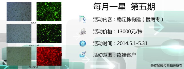 活动内容:客户提供模板,j9九游会提供过表达慢病毒稳定细胞株构建,赠送对照慢病毒稳定细胞株一株