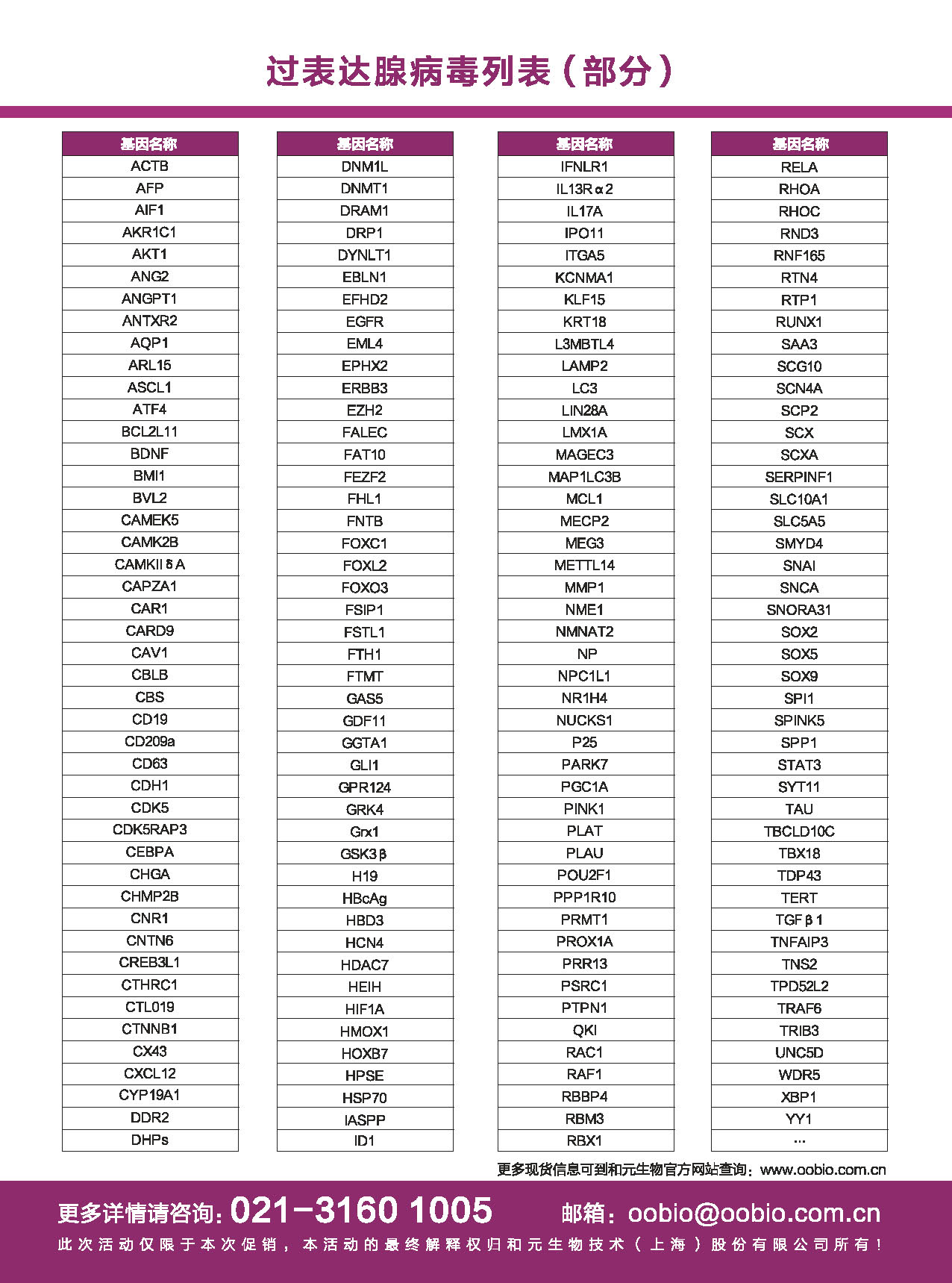 继慢病毒包装和预付款促销之后,腺病毒促销同样有很大的吸引力哦。腺病毒包装,低至7折。前所未有的冰点促销,你心动了吗?这次错过了,可能不会再有下一次了!