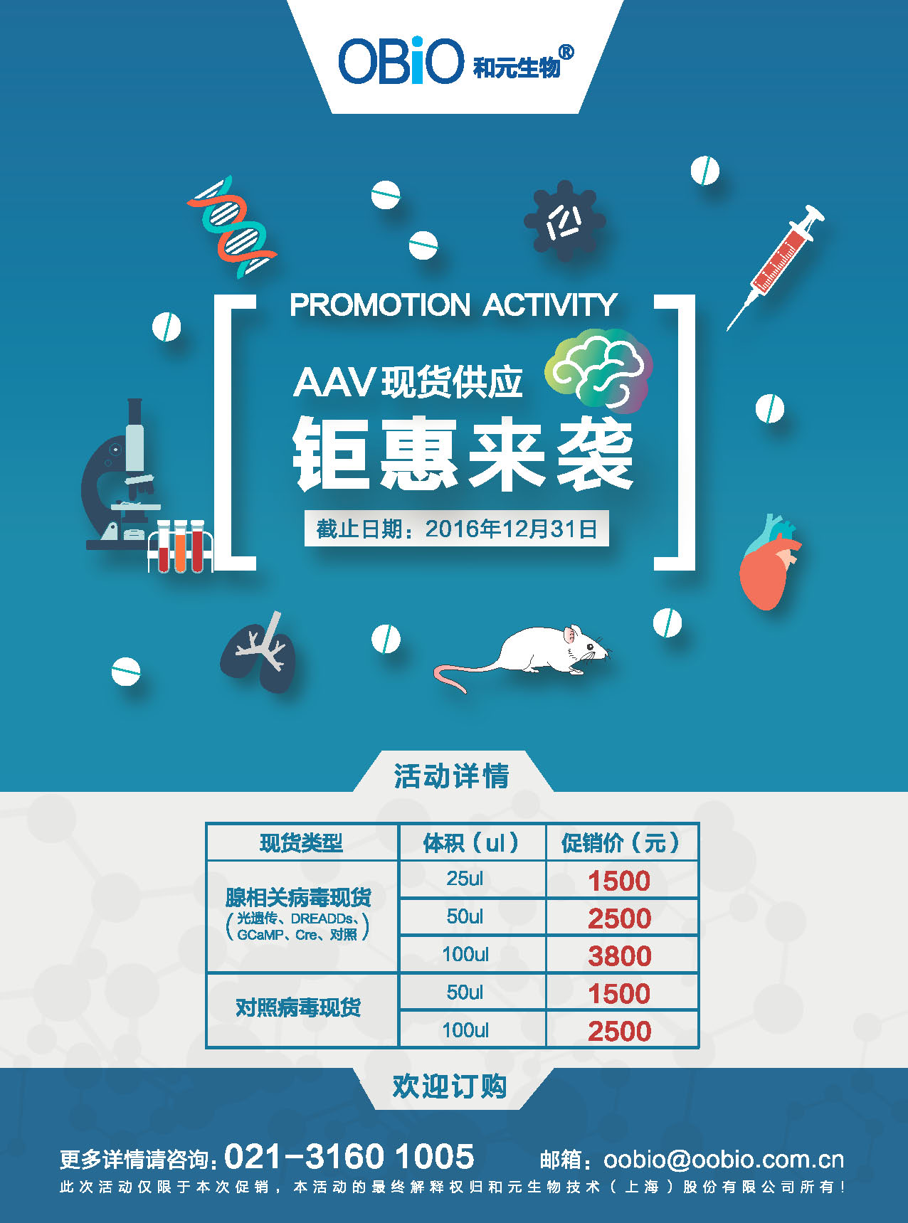 2016年最后一波腺相关病毒(AAV)现货促销,抓紧时机啦!