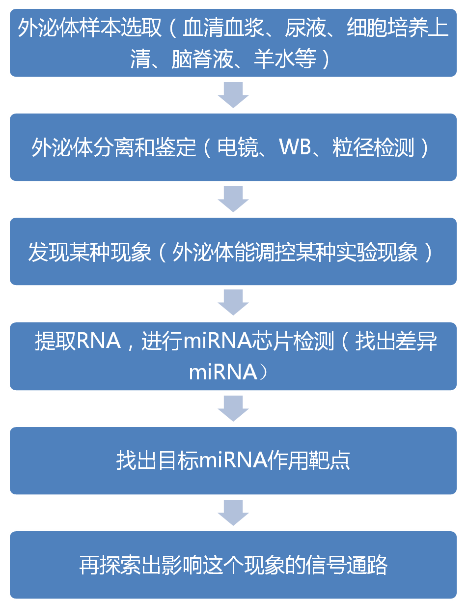 针对疾病研究,常见的研究思路如下(以外泌体miRNA为例):