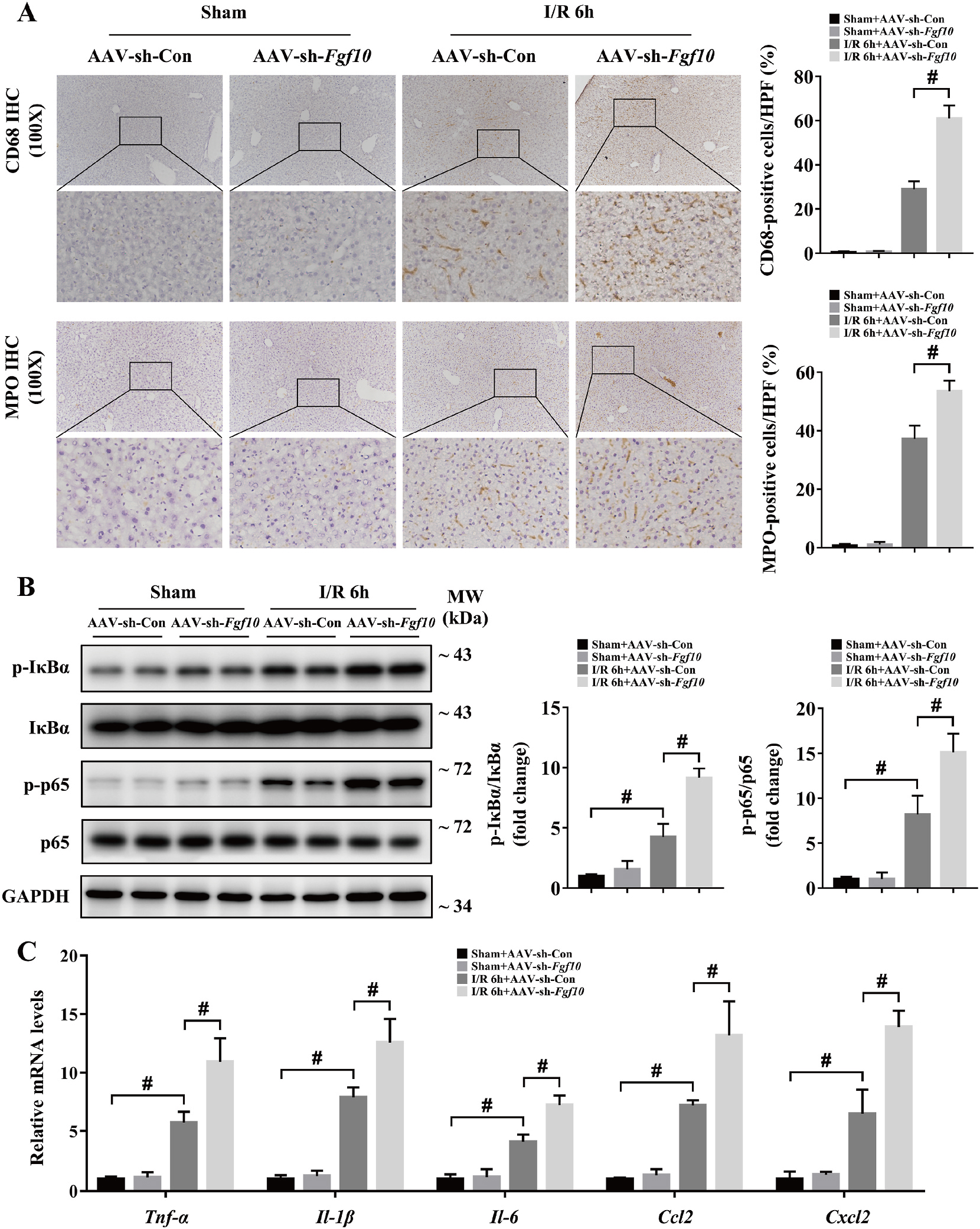 图8 干扰FGF10表达加重肝脏IRI免疫应激反应