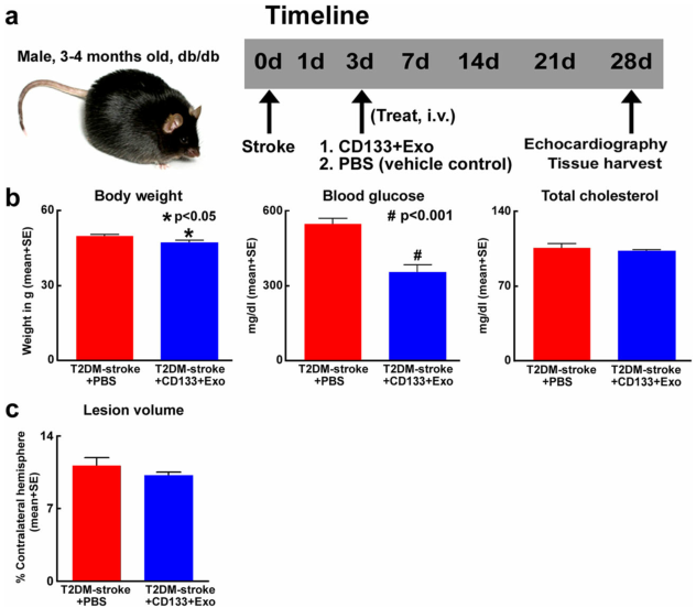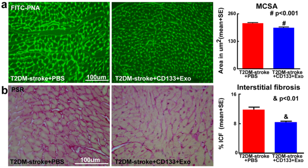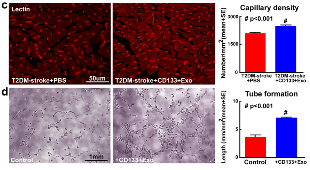 在这项研究中[1],作者研究了在2型糖尿病(T2DM)卒中后3天用从人脐带血来源的CD133+细胞(CD133+Exo)中提取的外泌体处理,观察CD133+Exo处理是否能改善心脏功能。