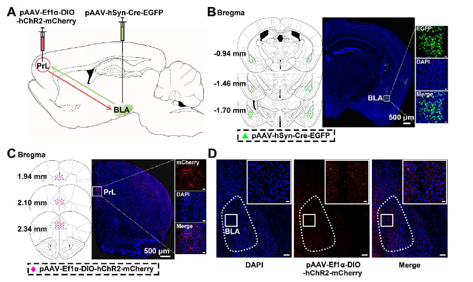 客户发表文章:Science Advances. (IF=11.511). Ping Zheng,et.al. (2019). Crucial role of feedback signals from prelimbic cortex to basolateral amygdala in the retrievals of morphine withdrawal memory. [腺相关病毒, 成瘾, AAV1, AAV-WGA-Cre]