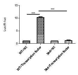 转录因子主要通过作用于靶基因的启动子起作用,将目的基因启动子区序列替换报告基因F-Luc的启动子,通过共表达转录因子后,报告基因表达的改变,来确定转录因子与靶基因启动子结合位点及对靶基因的作用。