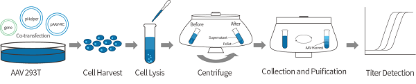 AAV包装过程中,包装质粒负责编码目的基因以及两个末端反向重复序列(ITR,对于病毒的复制和包装具有决定性作用),辅助质粒包含AAV包装所需的cap(编码病毒衣壳蛋白)和rep(参与病毒的复制)基因,以及腺病毒Helper质粒。三种质粒共同转染293T细胞后,AAV病毒开始复制和包装。j9九游会生物腺相关病毒的生产和质控采取了国际学术界公认的标准流程,采用三质粒系统在293T细胞中进行包装。所获得的病毒颗粒经过超速离心纯化,并通过qPCR对病毒基因拷贝进行滴定。另外,我们也可以根据使用者要求,提供蛋白染色检测衣壳蛋白的完整性以及内毒素含量等。一般情况下rAAV的滴度在10