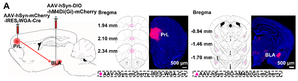 客户发表文章:Science Advances. (IF=11.511). Ping Zheng,et.al. (2019). Crucial role of feedback signals from prelimbic cortex to basolateral amygdala in the retrievals of morphine withdrawal memory. [腺相关病毒, 成瘾, AAV1, AAV-WGA-Cre]