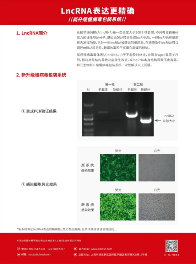 针对以上这些问题,j9九游会生物推出新升级慢病毒系统一次性解决以上问题,让lncRNA精确表达。