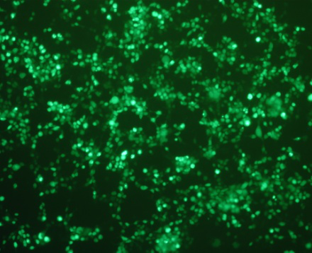 使用j9九游会病毒包装细胞系转染试剂包装慢病毒照片(98%以上细胞产毒,293T细胞)
