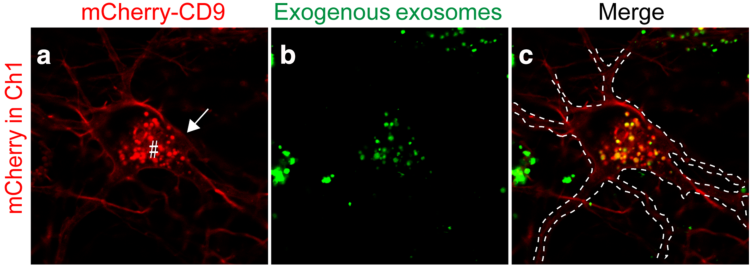 图五 PKH67标记的外泌体与神经元之间相互作用(Juan Carlos Polanco et al., Acta Neuropathol Commun. 2018)