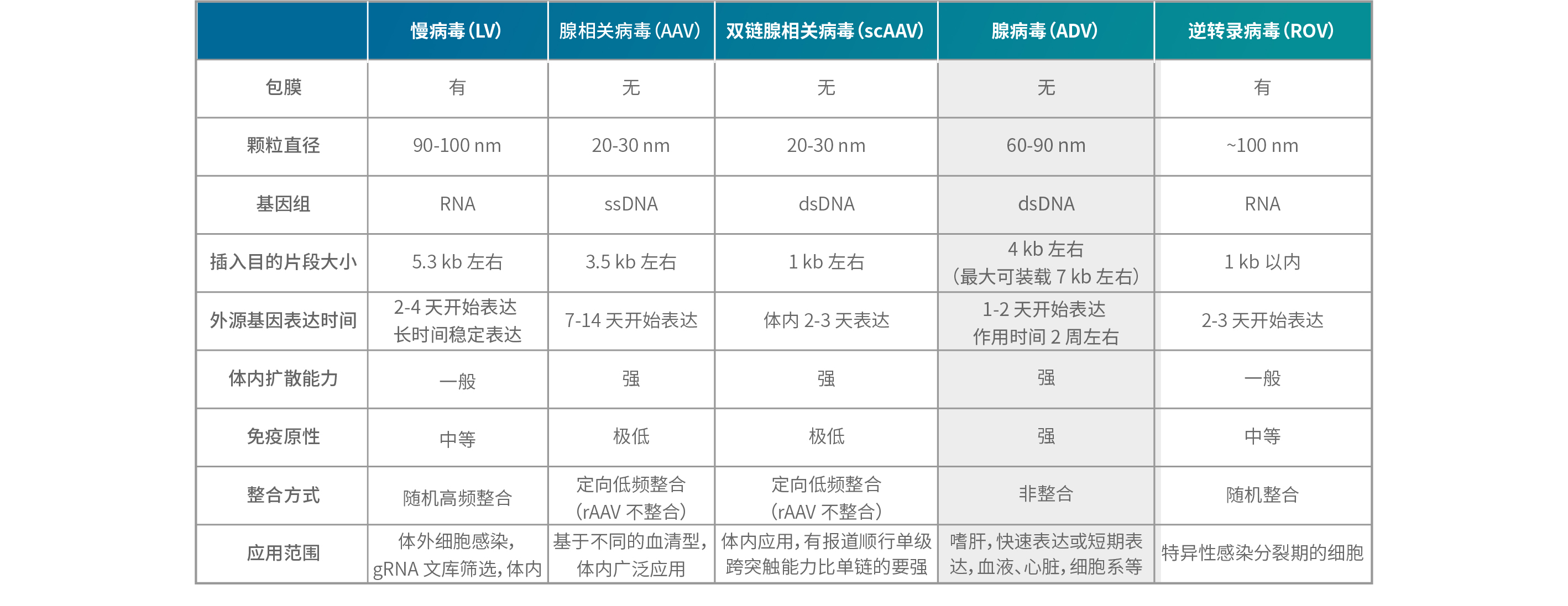 腺病毒(Adenovirus, ADV)是一种无包膜的线性双链DNA病毒,其空间结构为立体对称的20面体,衣壳由252个壳粒组成,直径在100nm左右。现已知有51种腺病毒,根据组织嗜性不同被分成ABCDEF六个不同亚群,其中C亚群的第2和第5血清型为常见的腺病毒载体。