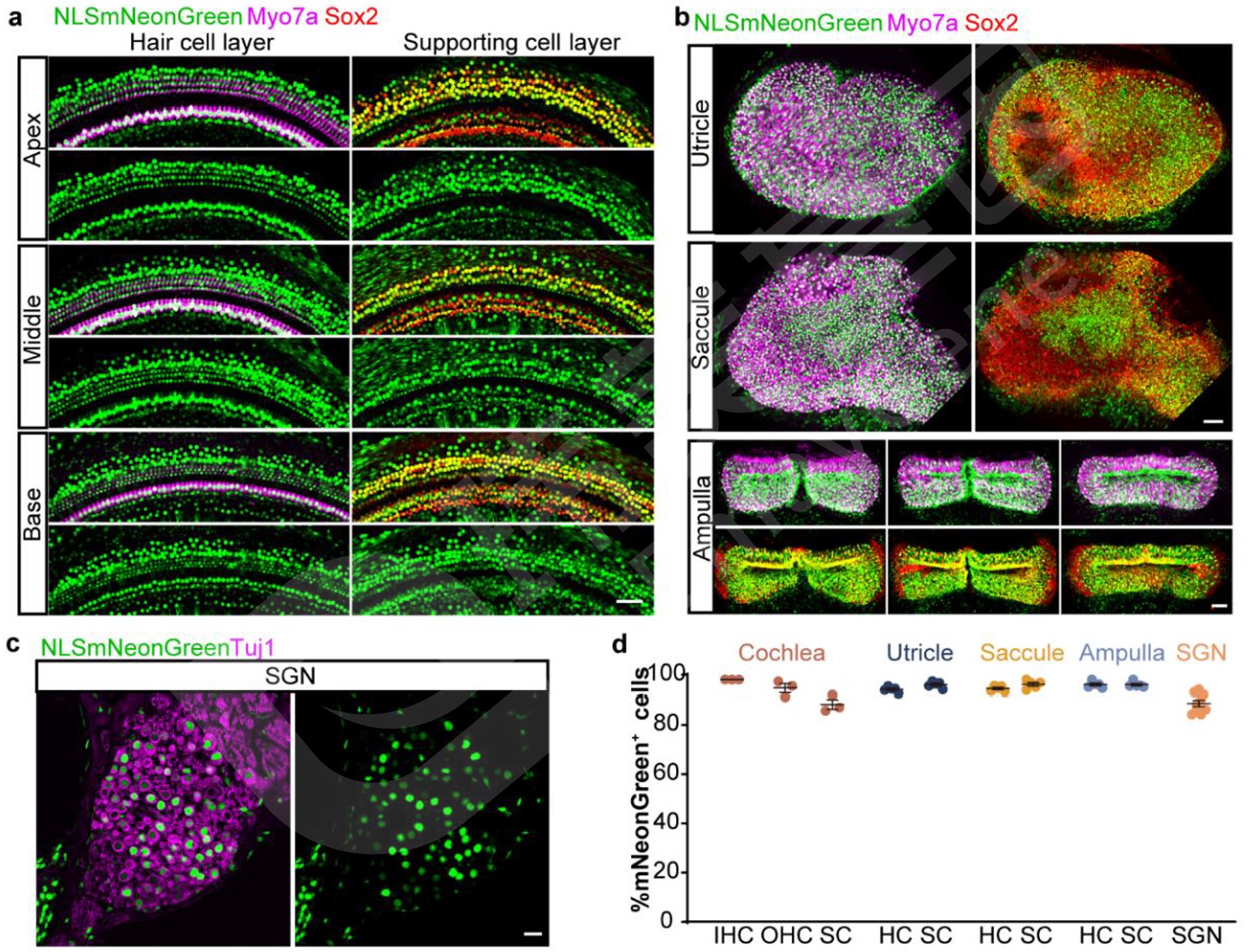 螺旋神经节特异启动子(图片来源:Prof. Guisheng Zhong)