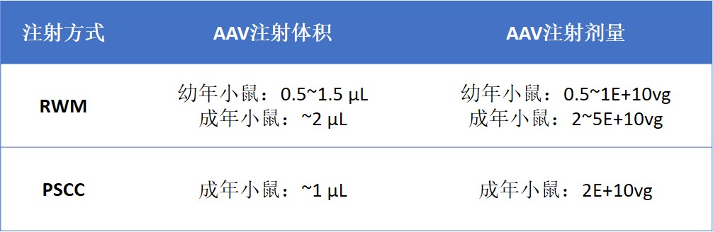 病毒注射:圆窗膜注射(RWM)、后半规管注射(PSCC)